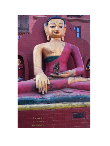 I'm off to Nepal for a few weeks to walk the Three Passes Trek and revisit much loved places in Kathmandu like Swayambhu, where this wonderful statue of Buddha resides.